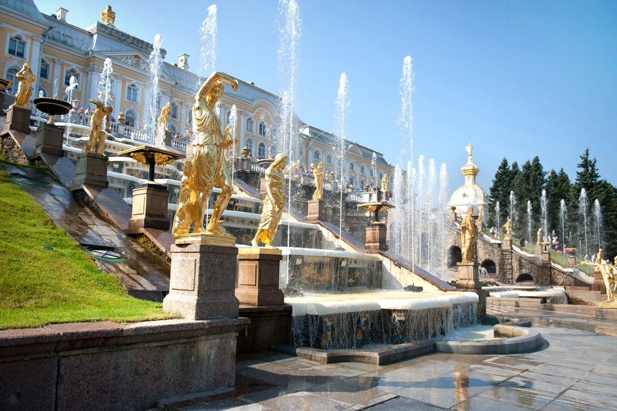 Петергоф — это настоящее чудо русской архитектуры и ландшафтного искусства. Роскошные фонтаны, величественный Большой дворец и ухоженные парки создают ощущение сказки.